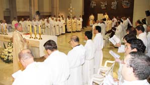 San Juan, 27 de Marzo.- Una de las misas más importantes del año se llevó a cabo hoy en la Iglesia Catedral. Fue la Misa Crismal, celebración que se realiza para renovar los votos de los curas oficiada por el arzobispo en el miércoles Santo.