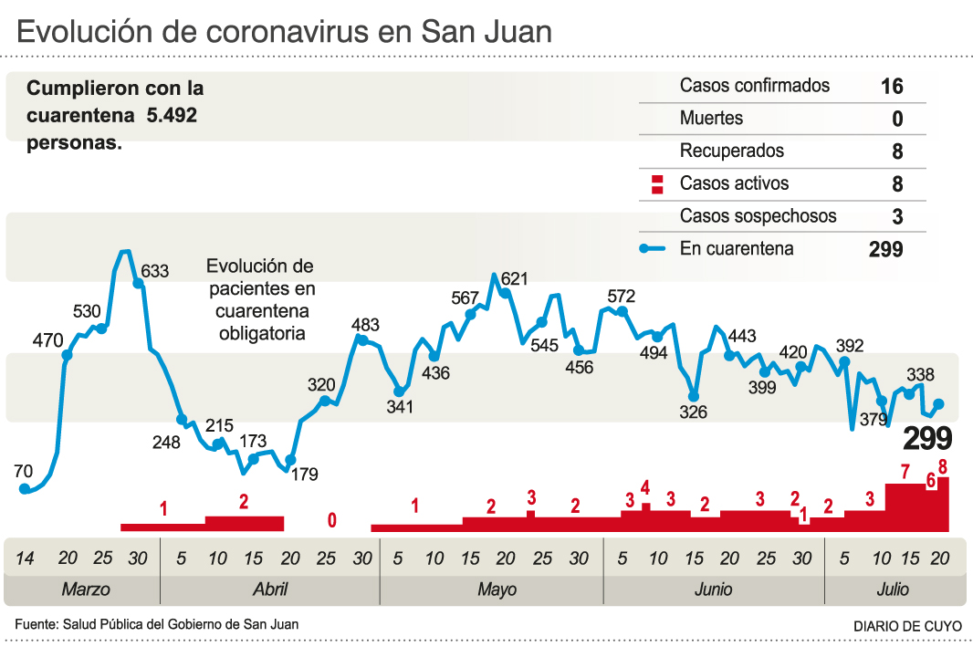 De los 16 casos que contabiliza San Juan, los últimos 10 son repatriados. E incluyendo los otros positivos que no registran las estadísticas locales, en total hay 8 camioneros. De esto se desprende que precisamente son los conjuntos de población más testeados y controlados en la provincia.