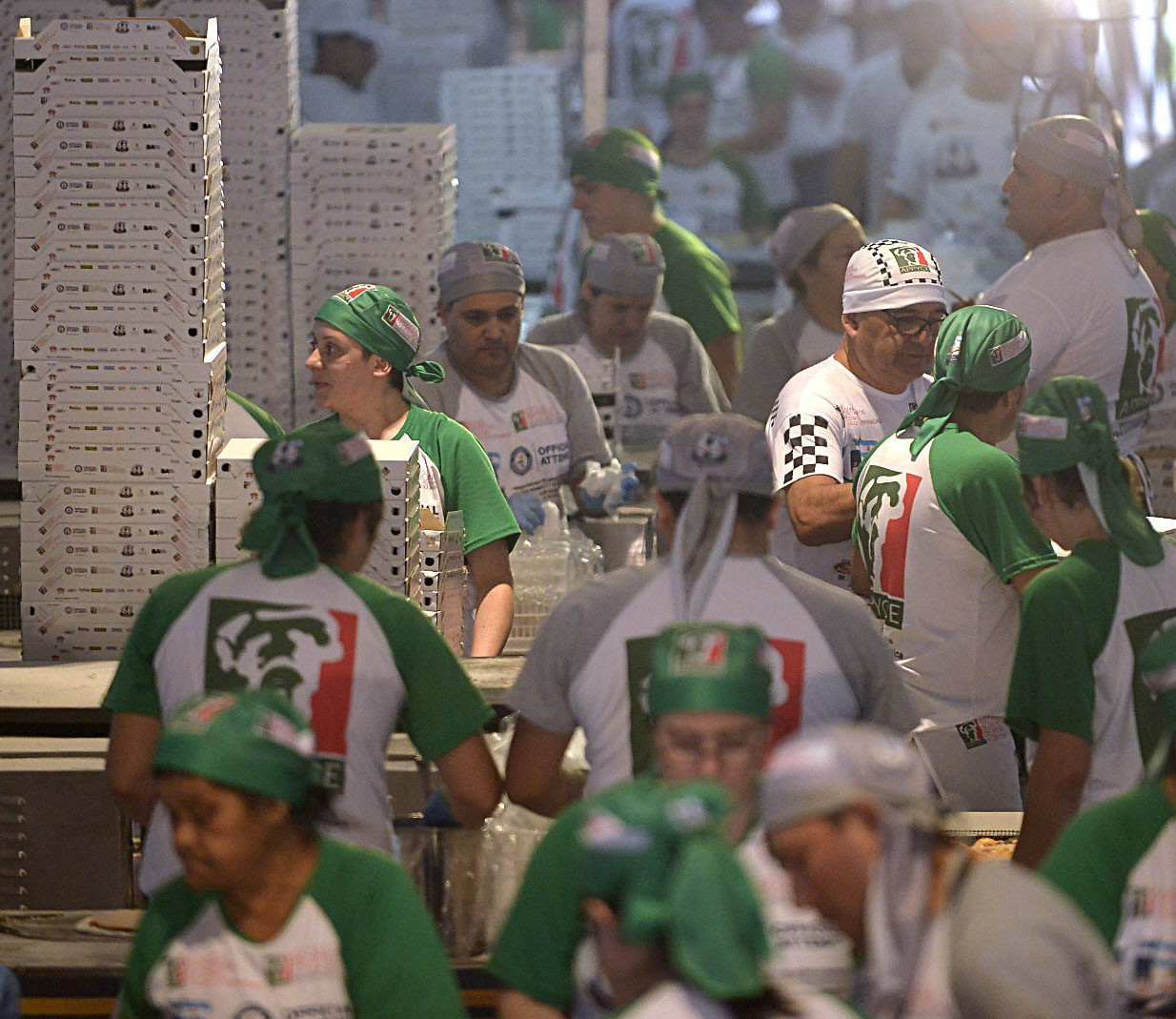 Y así fue que en la preparación, Labaké contactó a Mauricio Barón, para que fuese uno de los chefs invitados para integrar el equipo de 250 personas, que después de los preparativos del sábado, comenzó a las 8 del domingo con la producción de pizzas y empanadas. "Nos dividimos en dos turnos y en cada uno sacábamos de 180 a 300 pizzas por turno. Cuando faltaban dos horas para completar el tiempo, ya veíamos que la marca se iba a batir. Es que además que funcionó muy bien la logística, en los turnos de descanso buscábamos cómo poder ayudar en lo que hacía falta en algún sector. La verdad es que fue genial haber vivido esta experiencia", comentó Barón.