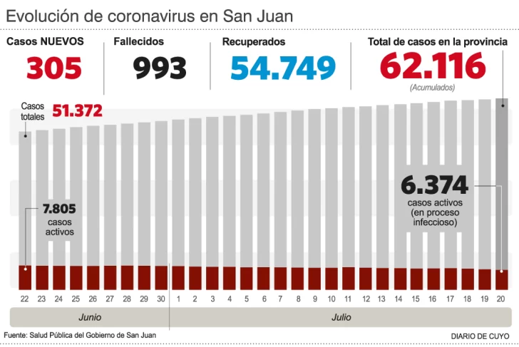 El Ministerio de Salud Pública informó ayer tres personas fallecidas y San Juan se acerca al millar de víctimas en pandemia. De acuerdo al parte diario, los decesos corresponden a un hombre de 78 años, de Chimbas, y dos mujeres de Sarmiento, de 50 y 75 años, por lo tanto ahora en la provincia hay en total 993 muertes.