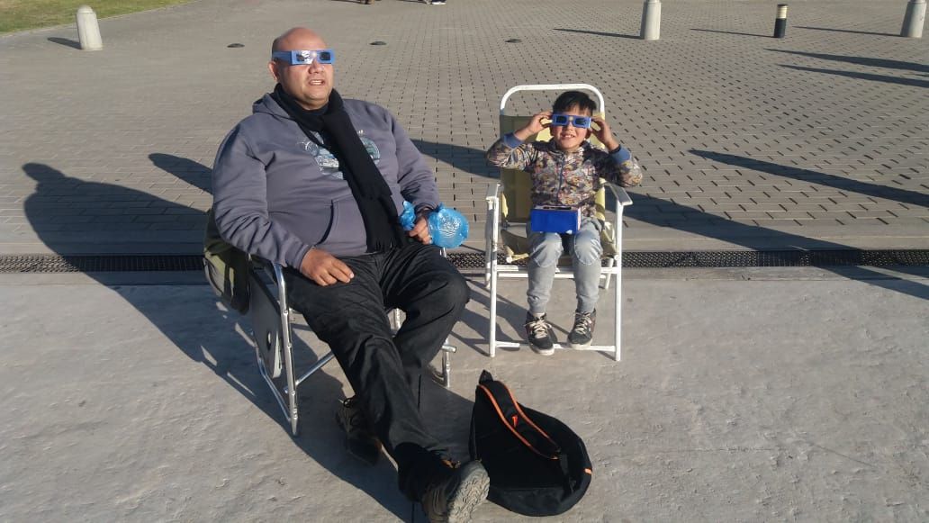En la ciudad de San Juan, en menor medida, hubo gente que decidió lugares urbanos para ver el eclipse solar. Uno de los sitios que fue epicentro de grandes y chicos.