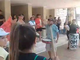 Sobre el hecho, también trascendió en un video en el que se observa a los manifestantes en la puerta del lugar y a una mujer que toma un micrófono y solicita que cesen con el ruido, debido al efecto que están causando en las personas afectadas.
