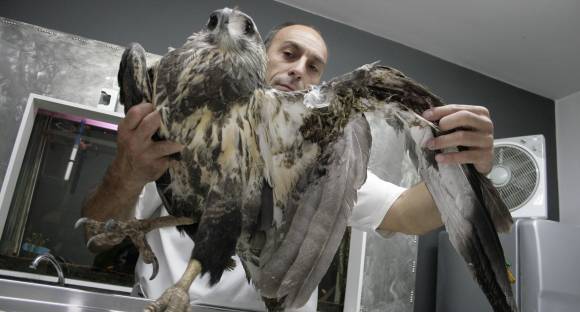 Llegó a la clínica a medianoche y hasta las 2 de la madrugada, el veterinario trabajó sobre el ala izquierda, que dejaba ver sus huesos sin músculos. La herida era tan grande como irreversible y por eso debieron amputarle la extremidad, para salvarle la vida. Se trata de un águila coronada, una especie en peligro de extinción, que fue usada como tiro al blanco, algo que preocupa a la autoridades pues es el segundo caso de un ave rapaz baleada en menos de un mes.