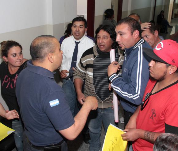 Cuando las horas pasaban y la puerta del Juzgado de Paz seguía cerrada, los vecinos de San Roque que fueron hasta San José de Jáchal a una audiencia convocada por el juez Pablo Oritja y que esperaban afuera se impacientaron. En ese pequeño pasillo del edificio ubicado frente a la plaza habían estado de pie y portando carteles pidiendo soluciones al problema del agua. Entonces, pasadas las 13 (tres horas después del horario de convocatoria) empezaron a hablar en voz alta pidiendo que alguien saliera a darles alguna respuesta (de la reunión participaron representantes de OSSE, Salud Pública, Fiscalía de Estado, Municipalidad de Jáchal y vecinos de San Roque), a la vez que otros empezaron a aplaudir. Un policía que estaba en el lugar intentó impedir esa espontánea manifestación y se vivió el momento más tenso de la jornada, pues generó una discusión.