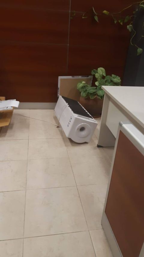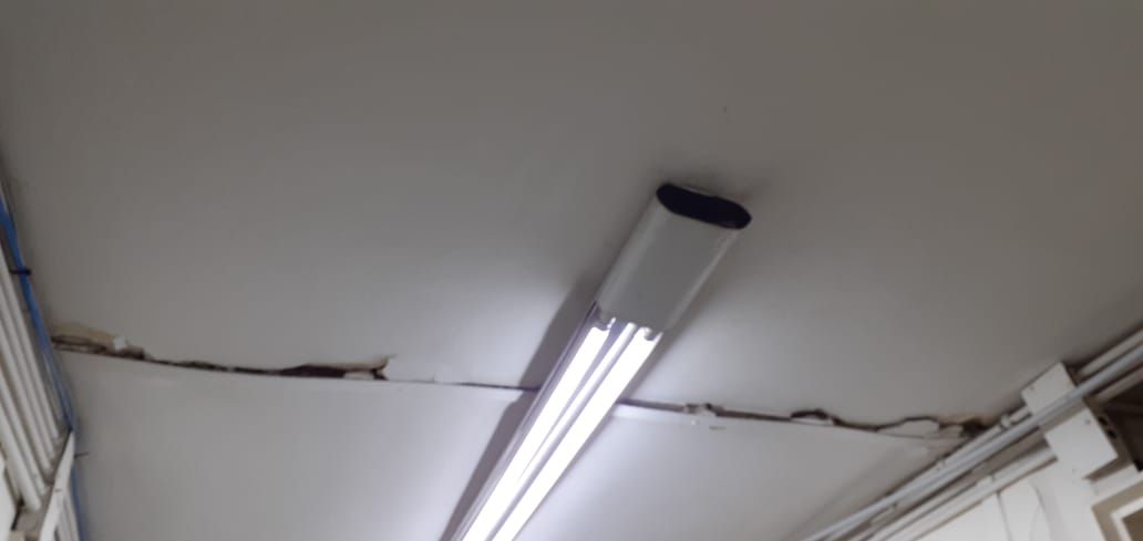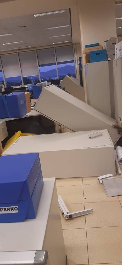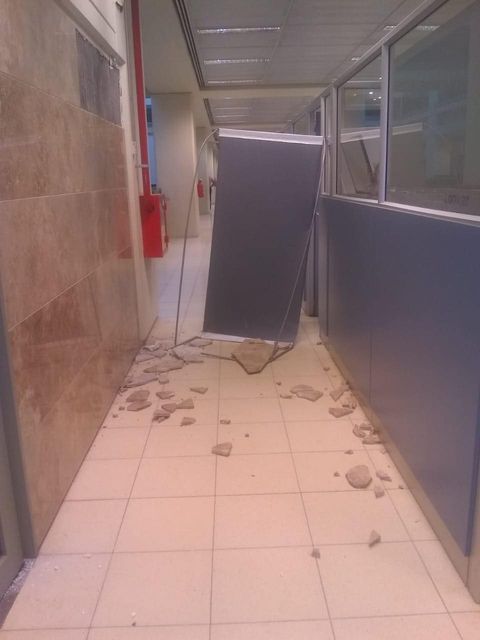 En las oficinas muchos de los armarios quedaron en el suelo, las carpetas y carteles también cayeron e incluso en algunos casos se desprendieron parte de los revestimientos.