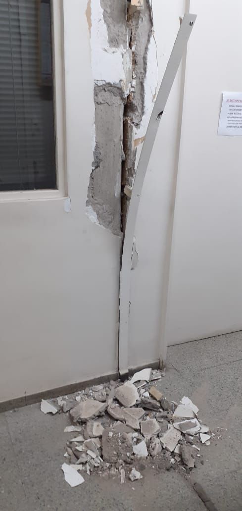 A primera hora, personal de repartición mencionada conjuntamente con la Dirección de Planeamiento y Desarrollo Urbano realizaron un relevamiento y control edilicio donde detectaron únicamente daños de carácter estético. Sastriques detalló al respecto: “Las estructuras están intactas, Planeamiento asegura que el edificio está para su ocupación inmediata. Los daños son estéticos, es decir, revestimientos, revoques, cielorrasos, cerámicos, placas de mármol que se cayeron. Dentro de las oficinas, armarios y otros muebles”.