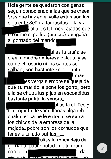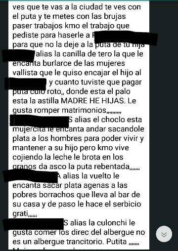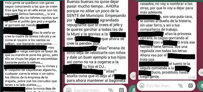 “Quien envía los mensajes se mofa e insulta a diferentes personas. Esa exposición afecta de forma directa a la moral, la privacidad y la paz con la que se solía convivir en el pueblo. Esto está entrando en la paranoia colectiva de la gente. Es todo muy angustiante”, comentó un vecino del departamento que prefirió mantener su nombre en reserva.
