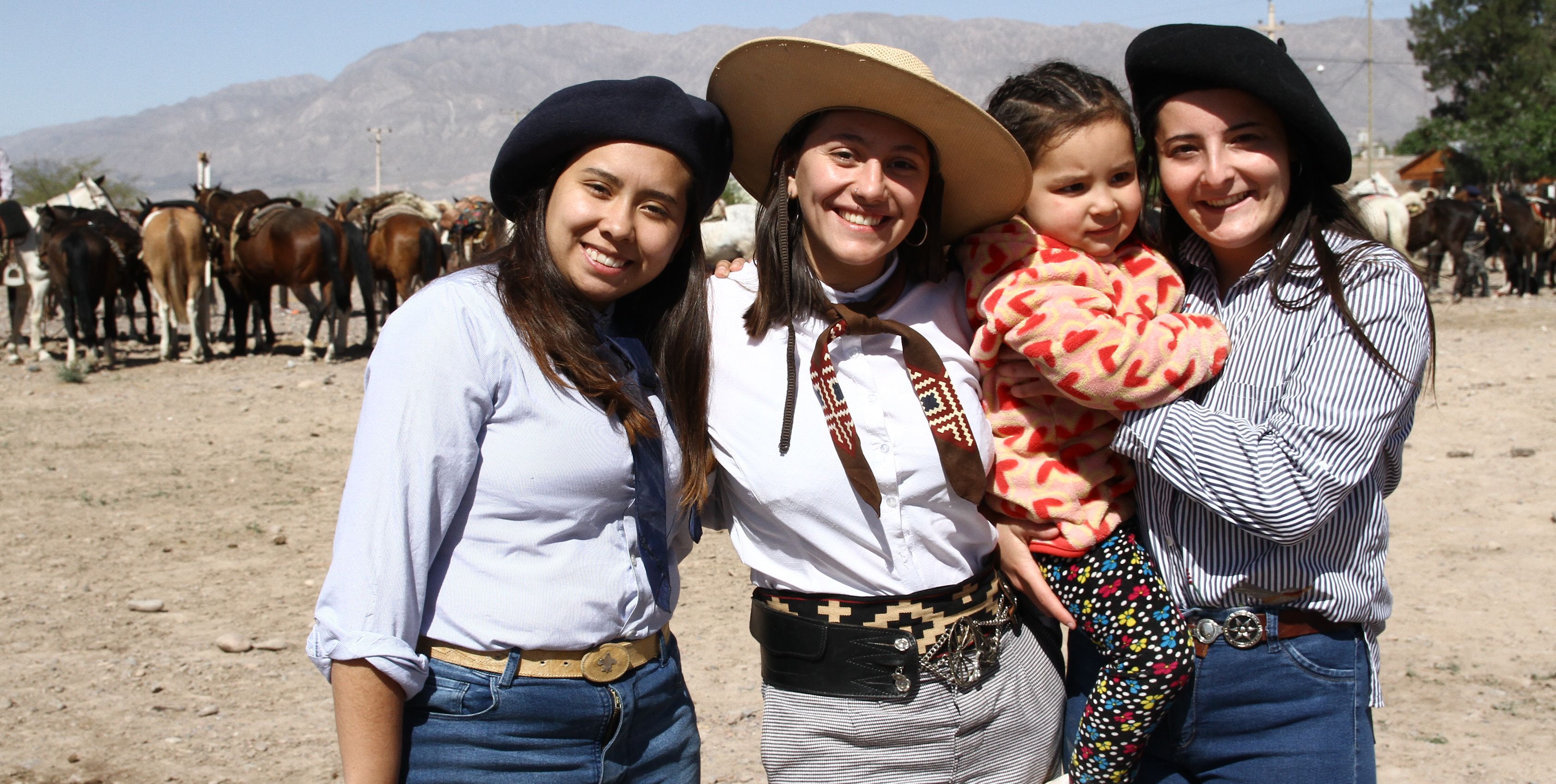 Vestidas con elegantes pilchas, Jazmín Becerra, Julieta Crespo, Lourdes Manrique y la pequeña Ambar Riveros disfrutaron del festival.