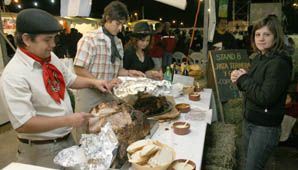San Juan, 18 de septiembre.- La Fiesta de las Dos Puntas comenzó esat noche en el predio donde se ubicará el futuro centro cívico de Rivadavia. Entre los atractivos hay una feria gastronómica con platos típicos de Argentina, Chile y Brasil.