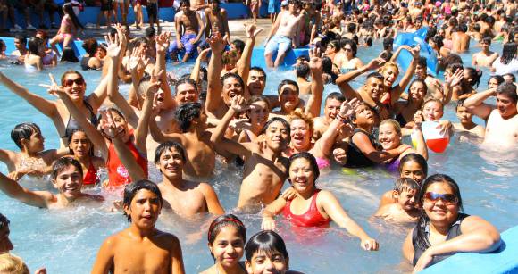 A pesar de que fue feriado, la gente hizo cola, pero no para pagar impuestos, sino para entrar a la pileta. Mientras tanto, quienes habían alcanzado la meta y pretendían mostrar un clavado tenían que pedirle al resto que les dejara lugar en el agua. Y para los chicos usar los inflables en un espacio tan reducido fue casi una misión imposible. Con ese nivel de concurrencia, la pileta del Camping de Rivadavia se transformó en el espacio más requerido para dar batalla al calor.