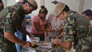 Además manifestaron que “la coordinación del trabajo en aquella escuela lo realiza La Municipalidad de Rivadavia mancomunadamente con el RIM 22, dirigido por el Mayor Antunes, quienes colaboran con el traslado, la comida y el desayuno para los damnificados”.