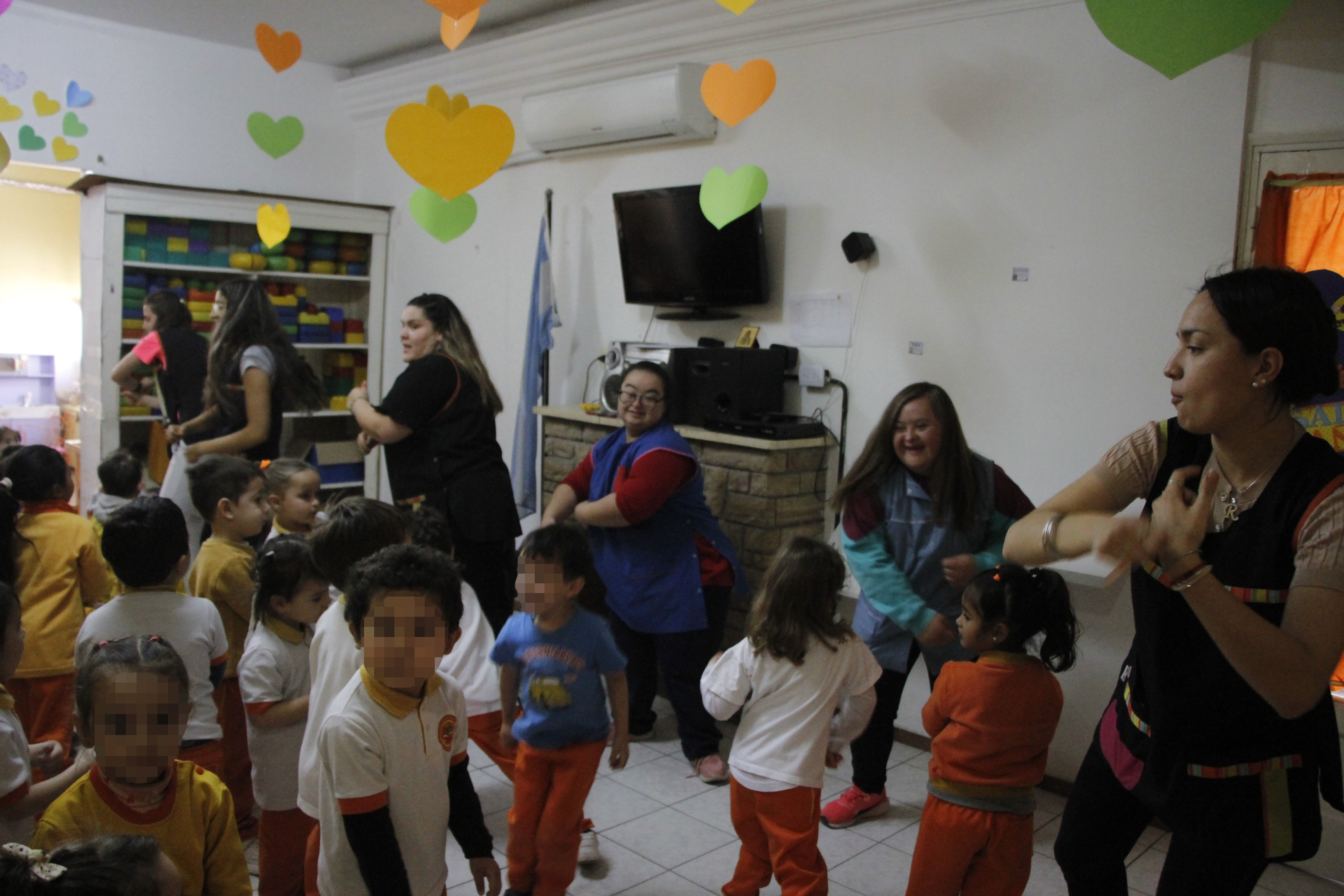 Sonriente y escondiendo cierta picardía detrás de sus lentes, compartió su tiempo con los niños de 4 y 5 años del Jardín y hasta encontró en la Seño Majo una cómplice para viajar a Los Ángeles (EEUU). En diferentes situaciones, repasa los colores y algunas palabras en inglés para “irse acostumbrando al nuevo idioma”. “Mi deseo es que pueda seguir soñando sin un límite”, dijo Dolores y su hija agregó: “Ella no tiene techos la sociedad te los pone pero yo sé que ella va a poder atravesarlos”.