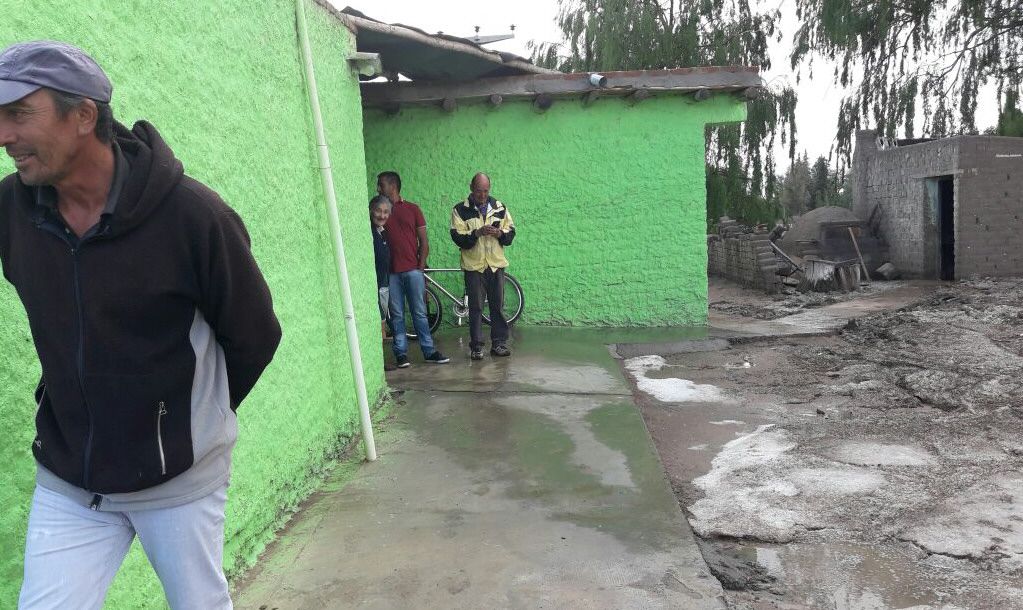 Llegó repentinamente y en sólo media hora ocasionó evacuados e importantes daños en la producción. Fue el temporal de lluvia y granizo que la noche del jueves pasado azotó un sector de Rodeo, en Iglesia. A causa de éste, 14 personas pertenecientes a 5 familias fueron alojadas en el hospital porque sus viviendas quedaron temporalmente inhabitables. Tras 10 horas, pudieron regresar a sus hogares. Tanto desde Acción Social como de Protección Civil de ese departamento dijeron que permanecen en alerta, ya que el pronóstico indica para hoy lluvias intensas en toda la provincia.