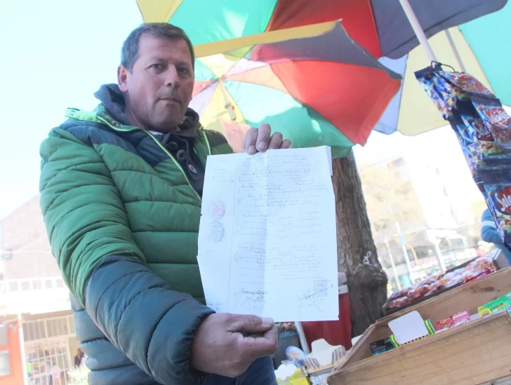 “Hace mucho tiempo busco saber quién soy”, dijo un tanto nervioso el hombre que con 52 años tiene un carro de golosinas y trabaja incansablemente en las puertas de la Escuela Antonio Torres.