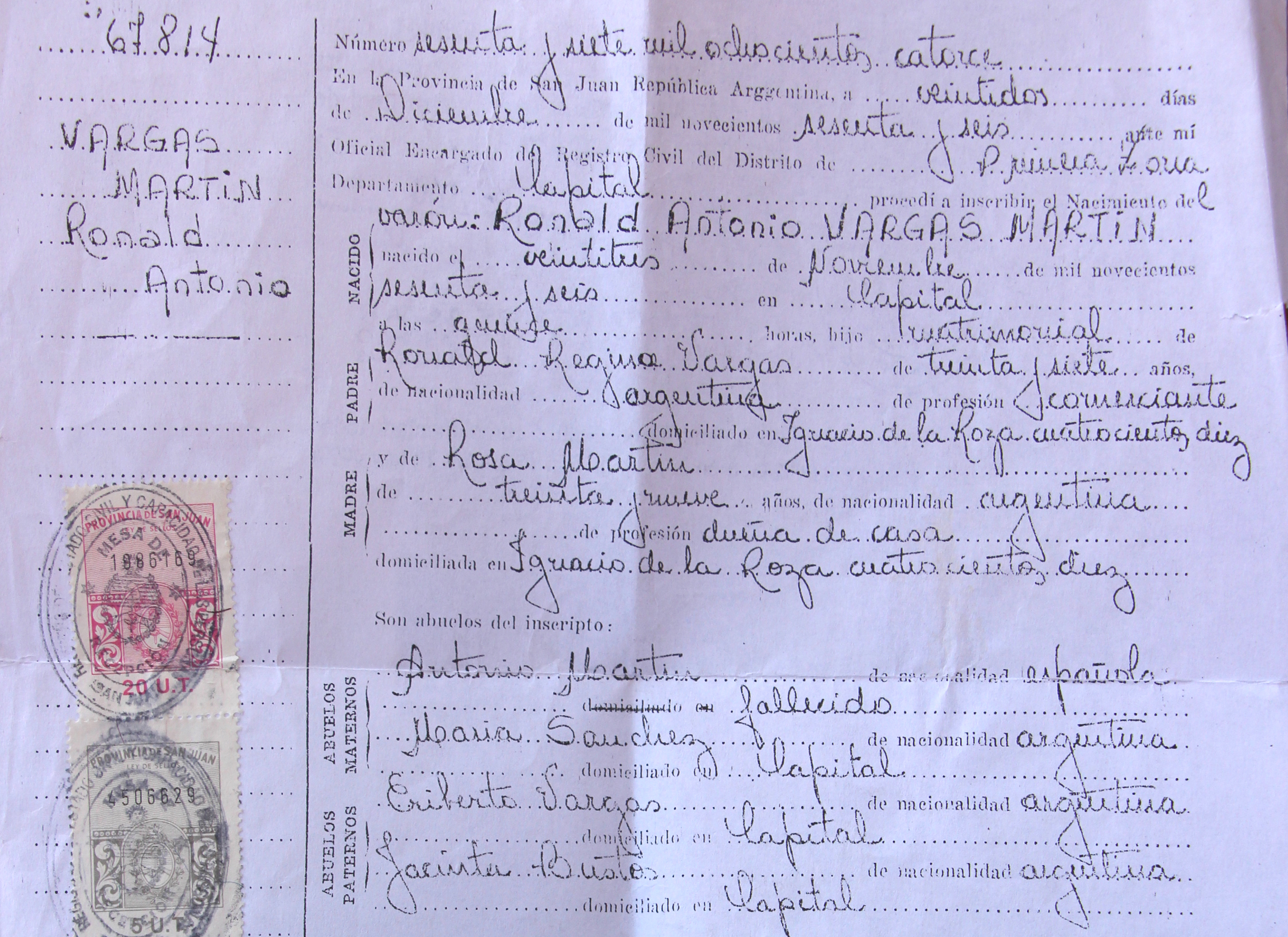 Con la partida de nacimiento en la mano, Ronald Antonio Vargas relata que hace 10 años una tía le contó que fue adoptado aunque en su interior, las sospechas de que no era hijo biológico de Rosa Martín y Ronald Vargas habían aumentado en el último tiempo de vida de sus papás.