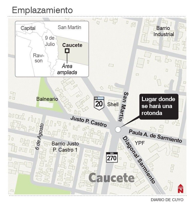 Es la intersección más complicada de Caucete. En ella convergen 6 arterias: una ruta nacional, una ruta provincial y 4 calles más, que entre todas suman 12 manos de circulación. Hasta hace un tiempo existía en este punto una rotonda formada por separadores amarillos que desaparecieron debido a los golpes recibidos por los vehículos de gran porte a los que les faltaba espacio para girar. Esta ausencia no sólo potenció el caos vehicular, sino también el riesgo de siniestros viales. Es por este motivo que el municipio de Caucete decidió construir en esta intersección una rotonda provisoria, pese a que es un trabajo que le compete a Vialidad Nacional. Ya arrancó esta obra que costará casi $4 millones y que se costeará con fondos municipales.