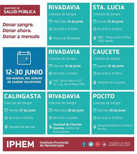 El próximo 14 de junio se celebra el Día Mundial del Donante Voluntario de Sangre. En ese marco, el Instituto Provincial de Hemoterapia (Iphem) saldrá a buscar dadores, bajo el lema “¿Qué puedes hacer?”, “Donar sangre. Donar ahora. Donar a menudo”.