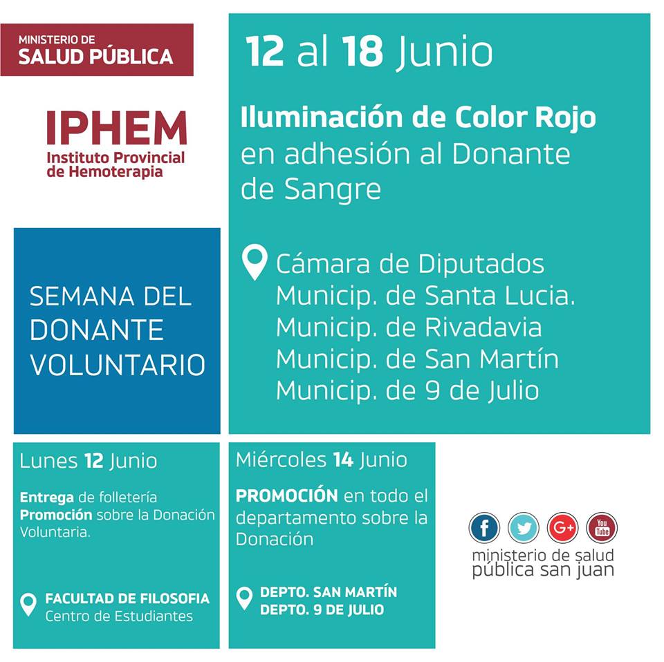 Desde el jueves, la campaña se mudará a los municipios de San Martín, 9 de Julio, Santa Lucia y Rivadavia, entre otros espacios. Además de las colectas de sangre se entregará folletería.