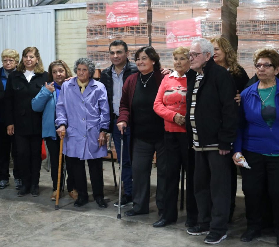 El intendente de Chimbas, Fabián Gramajo, entregó materiales para construir un nuevo salón para el Centro de Jubilados de Villa San Patricio.