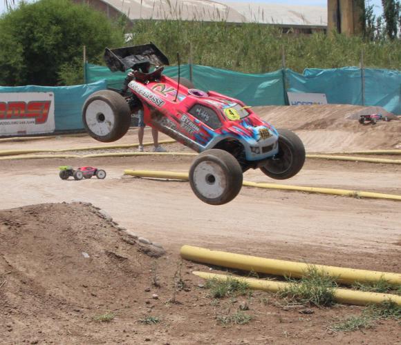 El zumbido de los motores propulsados por nitrometano, el derrape en las curvas, la adrenalina en boxes para repostar combustible en el menor tiempo posible, los 50 km/h de velocidad de los areneros, sus vertiginosas aceleraciones y los increíbles saltos de 17 metros de largo y 3 m de alto son un gancho perfecto, un anzuelo seductor que hace entender la pasión que tienen pilotos y mecánicos. Y se palpa con ser espectador del Campeonato Argentino de Automodelismo Radiocontrolado de Buggy y Truggy, que se está desarrollando en la pista de automodelismo del Aeroclub de Pocito. Ahí, poderosos todo terrenos en miniatura son capaces de atrapar a fanáticos y neófitos por la espectacularidad de sus competencias y el grado de avance tecnológico que la disciplina alcanzó en los últimos años.