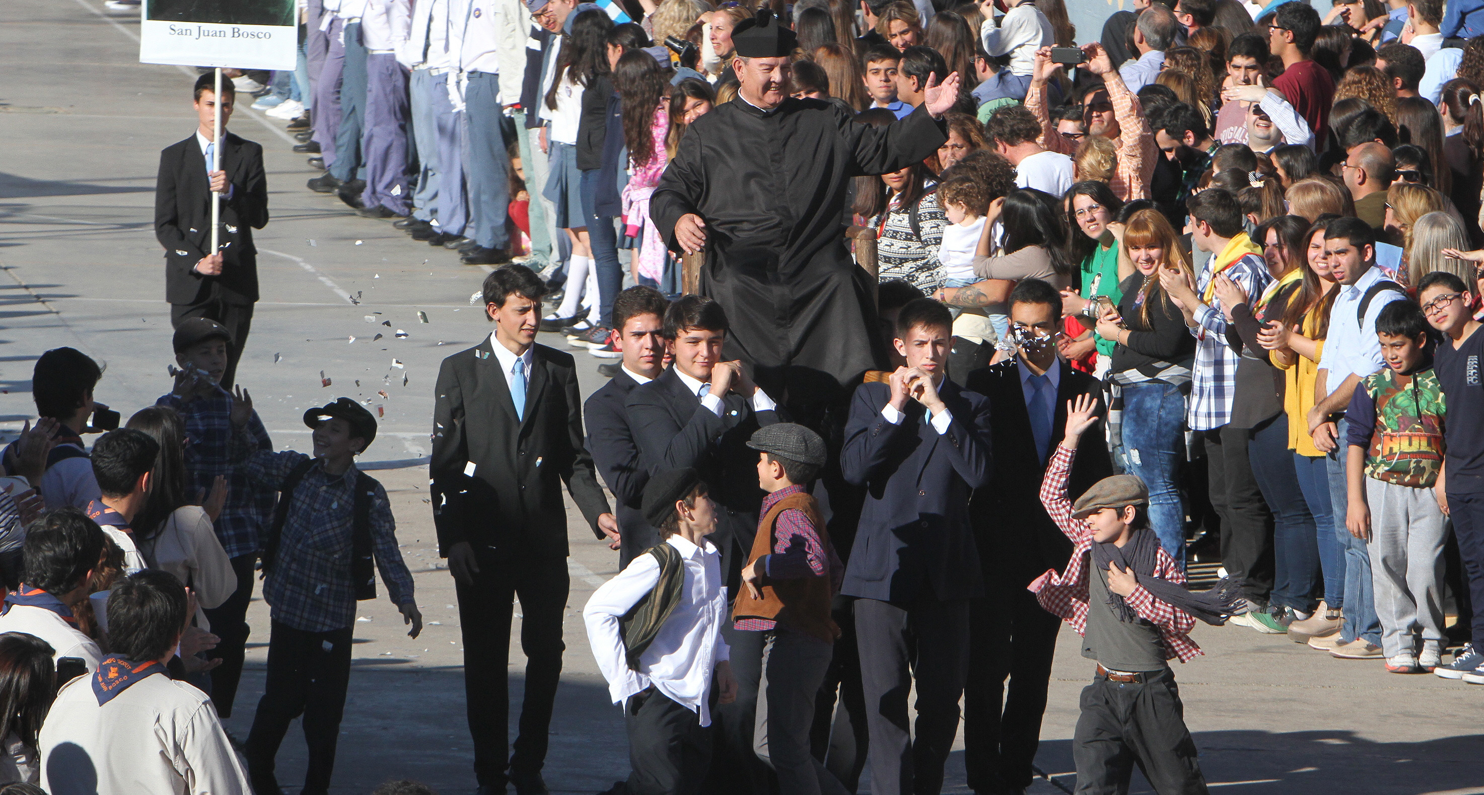 Anunciado por los locutores, San Juan Bosco ingresó al colegio y