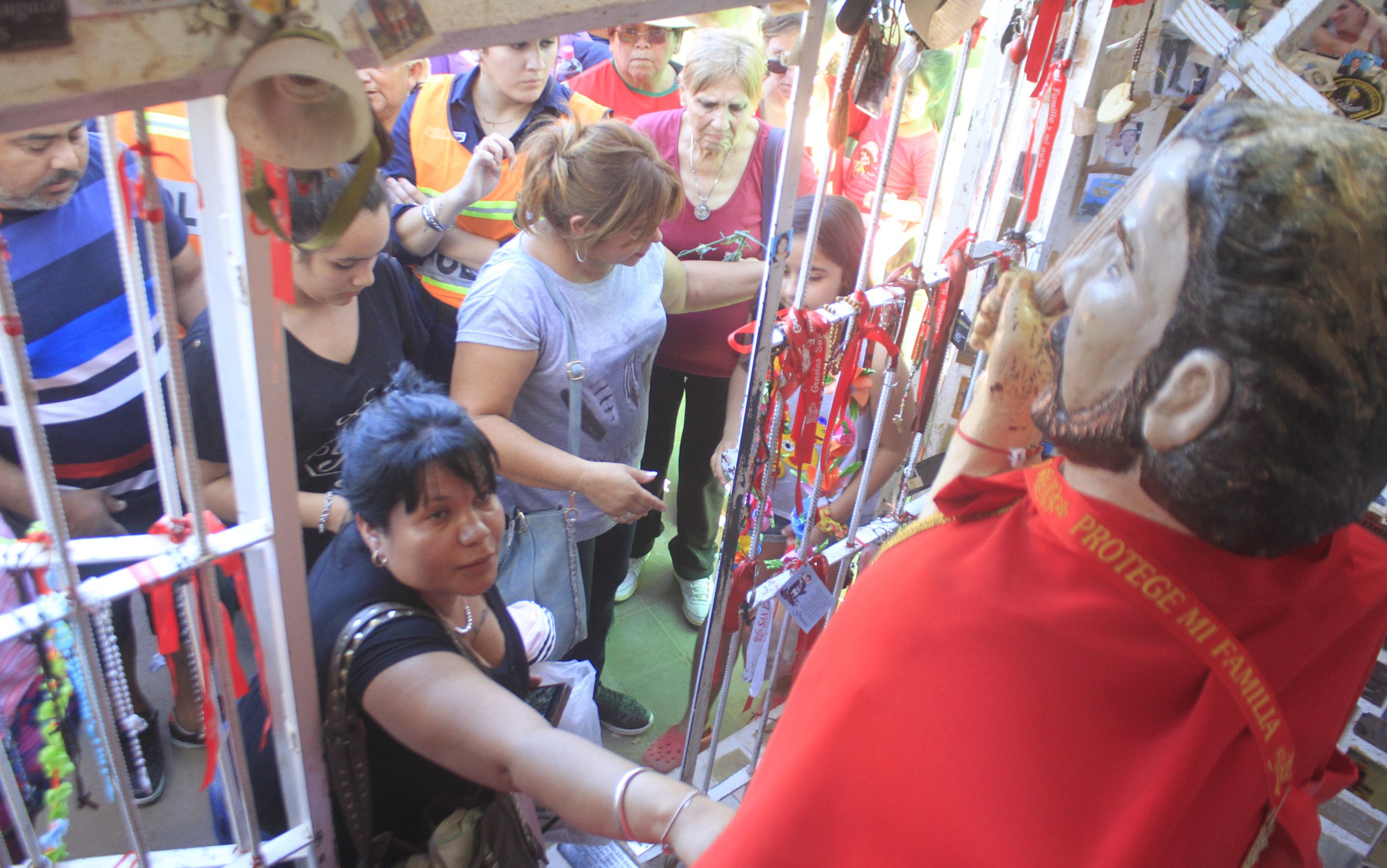 Marta Callejo llegó acompañada de su hermana Ángela y su marido Miguel. Ellos son de Córdoba y viajaron varias horas para poder darle las gracias a San Expedito. Marta comentó que ella viaja casi todos los años hasta la iglesia de Bermejo porque es muy devota de este santo. Pero, a la vez admitió que este año el viaje tuvo un motivo más especial. “Tengo artrosis y estuve muy mal. Gracias a que San Expedito intercedió, de a poco estoy volviendo a caminar y eso me pone feliz. Vengo a darle las gracias y a pedirle que me siga ayudando”, dijo la mujer que hizo casi una hora de fila para poder acariciar la imagen del santo que está cerca de la obra en construcción de la nueva iglesia. Esta familia cordobesa llegó junto a un contingente de casi 40 personas.