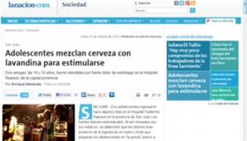 San Juan, 21 de octubre.- Nuevamente, la provincia fue tapa de los principales medios del país. Esta vez, por una nueva moda adolescente que realiza la famosa “previa” ingiriendo bebidas alcohólicas con lavandina.