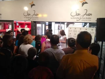 San Juan, 28 de enero.- El stand sanjuanino en Cosquín es uno de los más visitados por los turistas que llegan hasta Córdoba para participar de uno de los festivales folklóricos más importantes del país. Cerca de 500 personas se acercan cada noche al espacio montado en la plaza Prospero Molina para disfrutar de las actividades que allí se ofrecen. Además de mostrar la oferta turística de la provincia, encabezada por la edición 2014 de la Fiesta Nacional del Sol, las promotoras y personal del Ministerio de Turismo y Cultura, entregan folletería de los atractivos turísticos de San Juan. También, se reparten números entre los presentes para el sorteo de ponchos y vinos. Por otro lado se ofrece una degustación de diferentes varietales de bodegas sanjuaninas, pasas, nueces y dulce de membrillo.