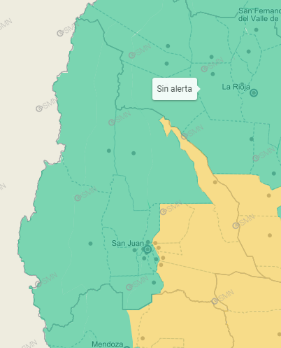 El Servicio Meteorológico Nacional tiene vigente un alerta amarillo por inclemencias que pueden afectar buena parte de la provincia, focalizadas en el centro-este de la geografía local.