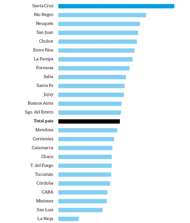Todas estas provincias están a su vez por arriba de la media nacional, que se ubica en el 10,1 por ciento. Esta situación también se vive en Chubut, Entre Ríos, La Pampa, Formosa, Salta, Santa Fe, Jujuy, Buenos Aires y Santiago del Estero.
