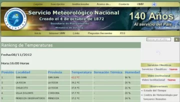 San Juan, 8 de noviembre.- Una fuerte ola de calor se ha hecho presente desde ayer en todo el territorio nacional, pero San Juan se destaca por sobre las demás provincias al haber alcanzado el primer lugar en el ránking de temperaturas, según indica el Servicio Meteorológico Nacional.