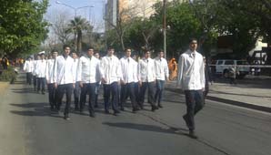 San Juan, 11 de septiembre.- La Avenida Libertador fue una vez más escenario del tradicional desfile en un nuevo aniversario del fallecimiento de Sarmiento y el acto de cierre de la semana en su honor. Cientos de alumnos de la provincia desfilaron ante un buen marco de público que se dio cita en el lugar.