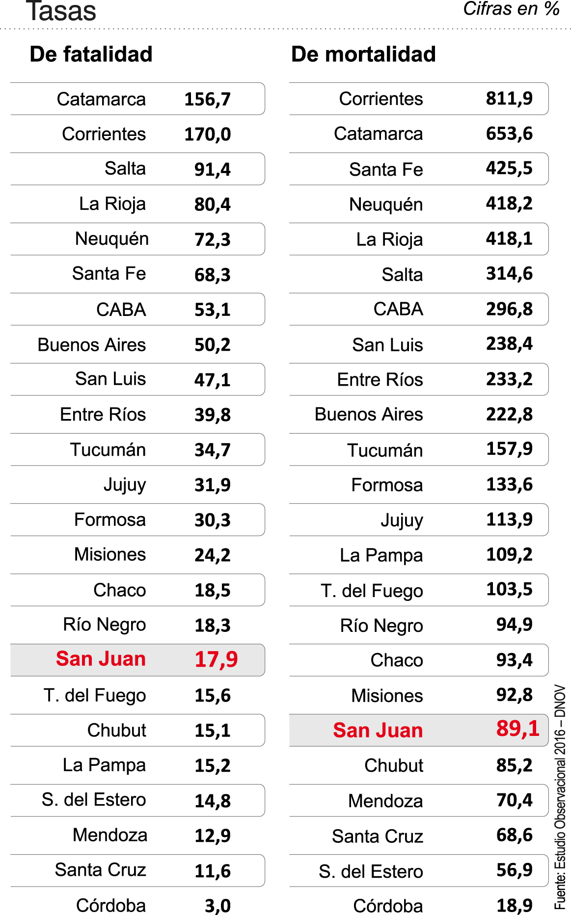 La primera repercusión por utilizar los elementos de seguridad en San Juan que evalúa Avila se refleja en las tasas de siniestralidad, ya sea cada 100.000 habitantes o cada 10.000 vehículos, porque en ambos casos la provincia se encuentra por debajo de la media nacional.