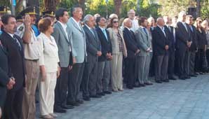 El gobernador José Luis Gioja encabezó el acto y recordó la figura del creador de la enseña patria Manuel Belgrano. “Bajo la celeste y blanca los argentinos nos cobijamos y seguimos el ejemplo de patriotismo que nos dejó Manuel Belgrano. Creo que es importante que todos nos unamos y sigamos caminando juntos”, dijo.