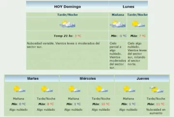 Para mañana lunes la máxima estimada es de solo 7 grados y la mínima prevista es de un grado bajo cero, con vientos moderados del sector sur.