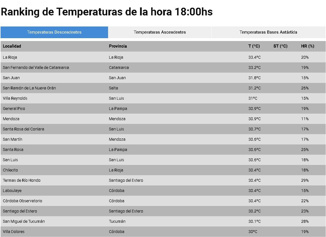 Según el organismo nacional, la provincia subió al podio de las provincias más calientes del país con 31,8 grados, solo por detrás de La Rioja (33,4º) y Catamarca (33,2º).