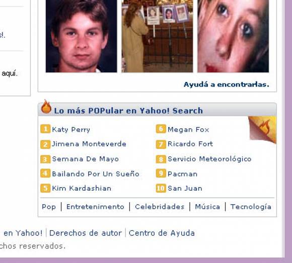 San Juan, 14 de mayo.- El buscador Yahoo! publica diariamente y según la cantidad de visitas, un ranking en el que da a conocer los sitios más buscados por los usuarios de internet. San Juan aparece en el lugar número 10 de ese ránking.