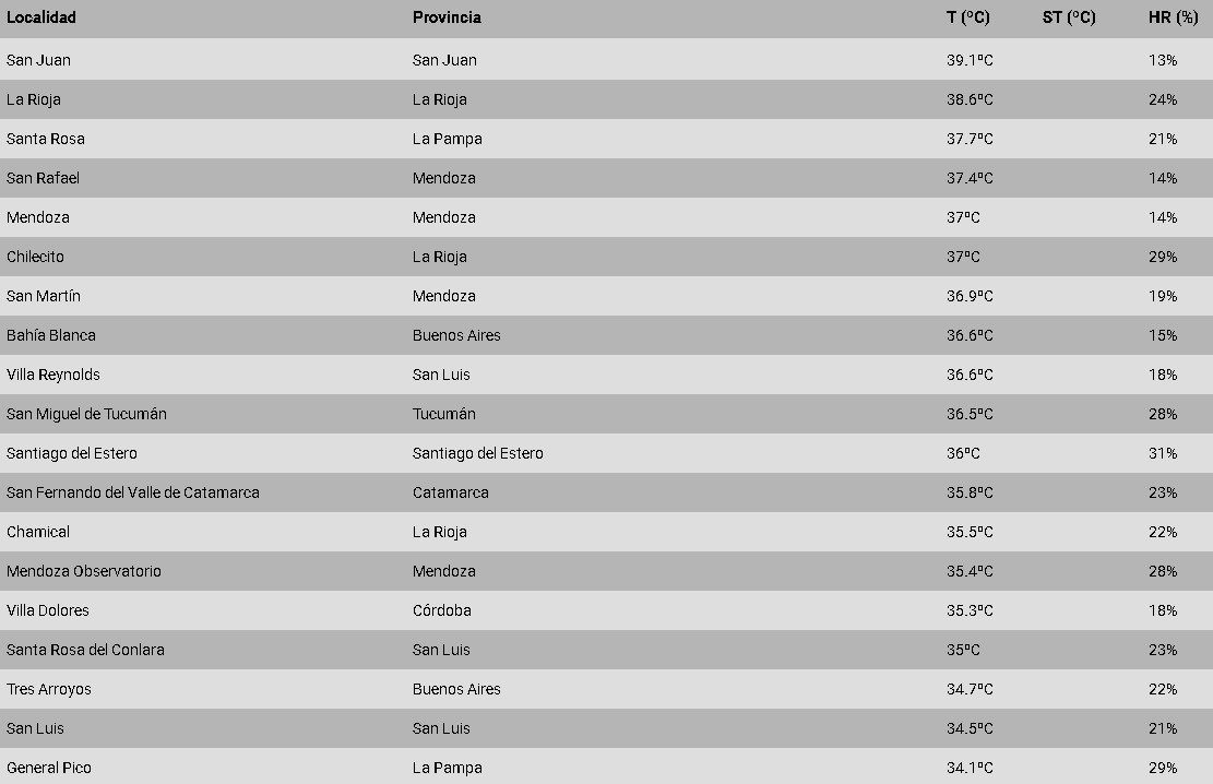 El termómetro marcó 39.1 grados a las 18 y posicionó a la provincia en lo más alto del ránking nacional. Al podio lo completaron La Rioja con 38.6º y La Pampa con 37.7º.