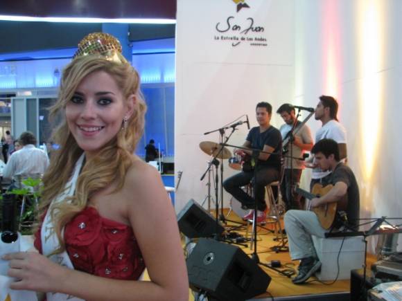 Hasta ayer estuvo abierto al público el stand de San Juan en la FIT (Feria Internacional del Turismo), que se realizará hasta mañana inclusive en el predio de La Rural, en Buenos Aires. Miles de personas visitaron la feria y pasaron por el espacio sanjuanino, donde hubo nuevamente (como en los años anteriores) muchos atractivos. Entre ellos, shows en vivo, degustaciones de productos típicos y sorteos de ponchos, estadías en destinos turísticos de la provincia, vinos, remeras y merchandising. El actor Pepe Monje participó en la locución de estos sorteos, que resultaron muy convocantes. La Reina del Sol (foto abajo) entregó los premios a los ganadores de los sorteos y también estuvo el ministro de Turismo sanjuanino, Dante Elizondo, junto a su par de la Nación, Enrique Meyer. Y el “gancho” por excelencia fue la representación, a escala, de la ruta en la cordillera que sigue cada año el Cruce Sanmartiniano (foto arriba).