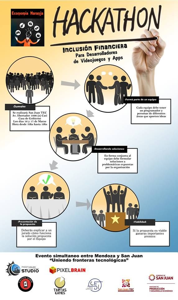 San Juan, junto a la vecina provincia de Mendoza, invitan a expertos en finanzas, emprendedores creativos, desarrolladores de videojuegos, programadores, diseñadores, comunicadores, para conformar y participar, en equipos multidisciplinarios, en lo que será el primer Hackathon de Industrias Creativas e Inclusión Financiera, que tendrá lugar simultáneamente en ambas provincias durante los días 16 y 17 de marzo.