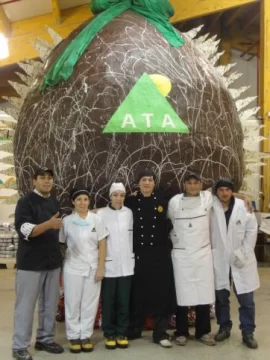 Carlos Sola, propietario de ATA, explicó a Diario de Cuyo Online que “los reposteros nuestros, siempre preparan en las fechas religiosas y patrias, productos artesanales hechos por ellos mismos, pero ya es tradicional hacer para Pascuas huevos gigantes. El año pasado fue grande pero no tanto como el que se ha hecho este año. Los muchachos implementaron técnicas tomadas de los grandes maestros chocolateros y han logrado terminar un huevo gigantesco, impresionante”, relató.