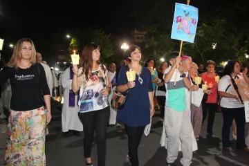 Grandes y chicos, pero principalmente familias, dijeron presente en la marcha de antorchas que rodeó la Plaza 25 de Mayo y que pidió la defensa de las dos vidas. Luego de la misa en la Catedral, los feligreses se dispusieron en calle Mendoza y avenida Ignacio de la Roza para caminar con carteles a favor del niño por nacer y en contra del aborto.