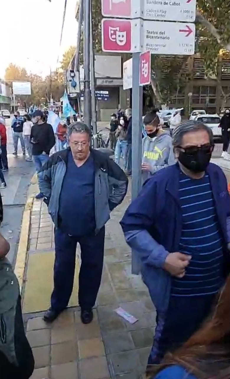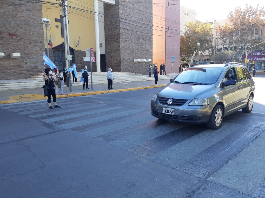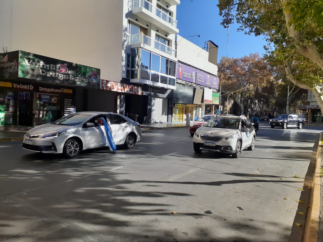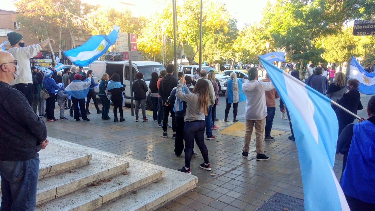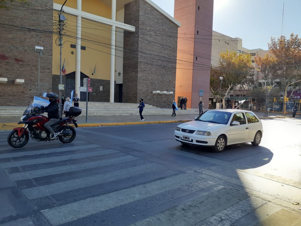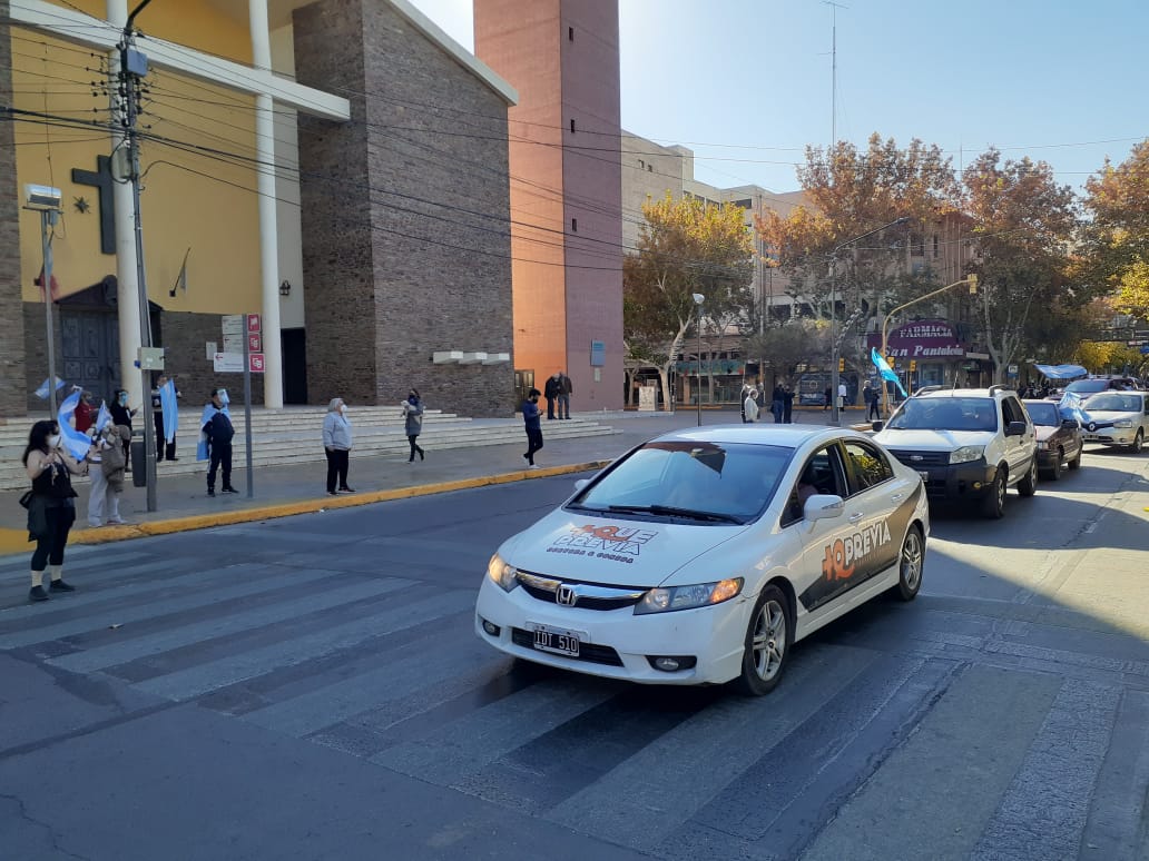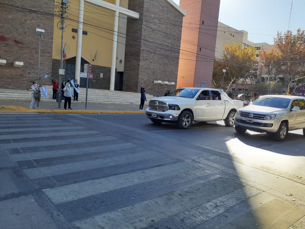 Bajo la consigna “#25MTODOSaLasCalles” y”#25MBanderazoFederal”, cientos de vehículos con manifestantes sanjuaninos salieron a las calles y coparon los alrededores de la Plaza 25 de Mayo en una caravana caracterizada por los colores celeste y blanco. Otras personas decidieron bajarse de sus autos pese al confinamiento por la escalada de casos de coronavirus e hicieron flamear sus banderas argentinas en las escalinatas de la Catedral y también sobre calle Mendoza.