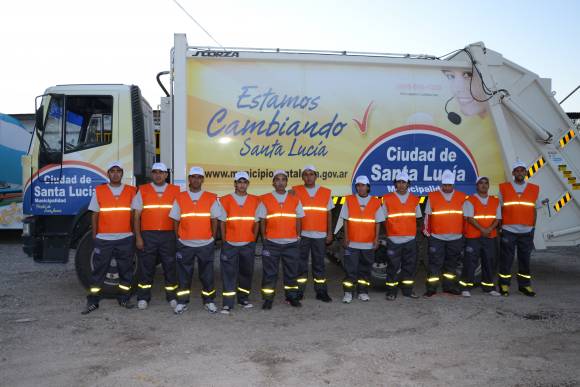 San Juan, 25 de marzo.- En las últimas horas, operarios de la recolección de residuos de la Municipalidad de Santa Lucía recibieron nuevo equipo de trabajo. La vestimenta está provista de elementos de seguridad e higiene, bandas reflectivas, chaleco.