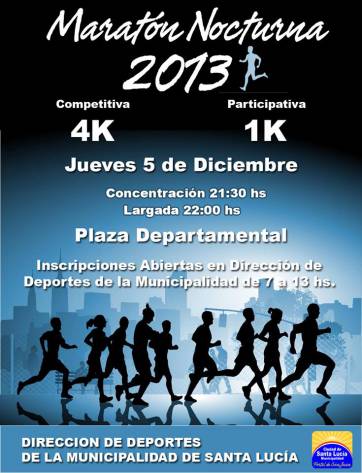 San Juan, 3 de diciembre.- Santa Lucía se prepara para festejar su aniversario 142 a lo grande. Entre las actividades programadas, este jueves se realizará una nueva edición del maratón nocturno por las calles del departamento.