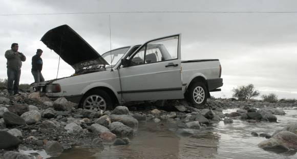 El panorama fue desolador. La crecida arrastró cien metros a una camioneta y su conductor Omar Narváez estuvo encerrado en el vehículo durante 2 horas hasta que fue rescatado. Fue en el límite de Divisadero y Cieneguita, en Sarmiento. A esto se sumó que la cantidad de granizo que cayó, alarmó a los pobladores. Sobre todo a los que viven en Los Berros. Este fue el departamento que más sintió los latigazos del temporal que azotó ayer parte de la provincia. En otros 4 departamentos (Rawson, Santa Lucía, Caucete y Angaco), también cayó piedra pero más leve. Hasta el cierre de esta edición no había datos de daños en la producción y no se registraron evacuados ni heridos.