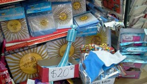 En cuanto a precios, hay de los más variados. Camisetas imitación para adulto pueden conseguirse desde los $100 en adelante. Eso sí, la oficial supera los $700. Para niños hay de $70 y $500, respectivamente. Gorritos, tipo bufón, se venden desde $30 en adelante. Las pelotas albiceleste no pueden faltar y están quienes las venden desde $100.