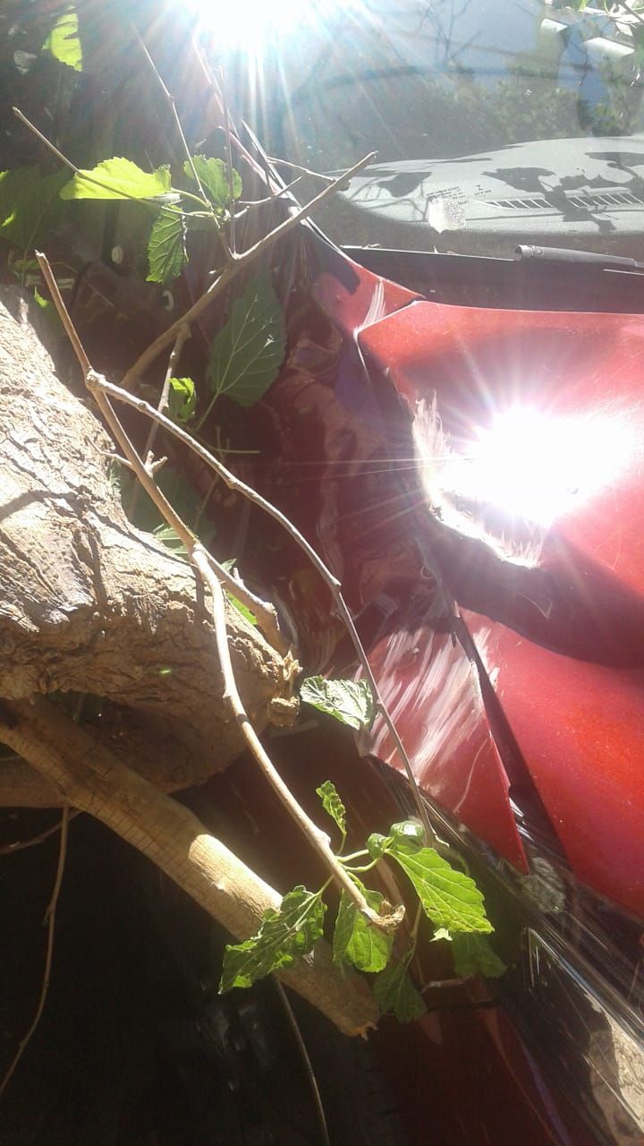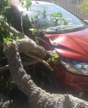 Una sanjuanina se salvó de milagro de salir lastimada esta mañana. La mujer llegó a su casa, estacionó del auto y bajó. Segundos después, una gran rama se desprendió de un árbol y cayó sobre el vehículo.