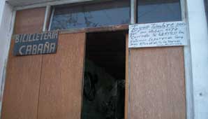 ’Toque timbre. Porque nos roban, está cerrado. Señor ladrón lo estamos esperando. Será muy bien atendido, se lo merece. Somos responsables’, dice el cartel que cuelga de la puerta celosamente cerrada de una bicicletería, ubicada en Avenida Alem y Pedro Echagüe, y que durante 25 años trabajó con las puertas abiertas de par en par.