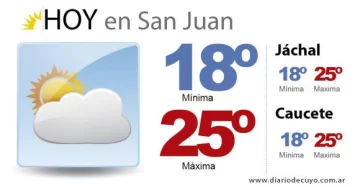 El pronóstico indica la presencia de viento Zonda durante buena parte del día y recién en horas de la tarde-noche rotará hacia el Sur. La máxima rondará los 25 grados.